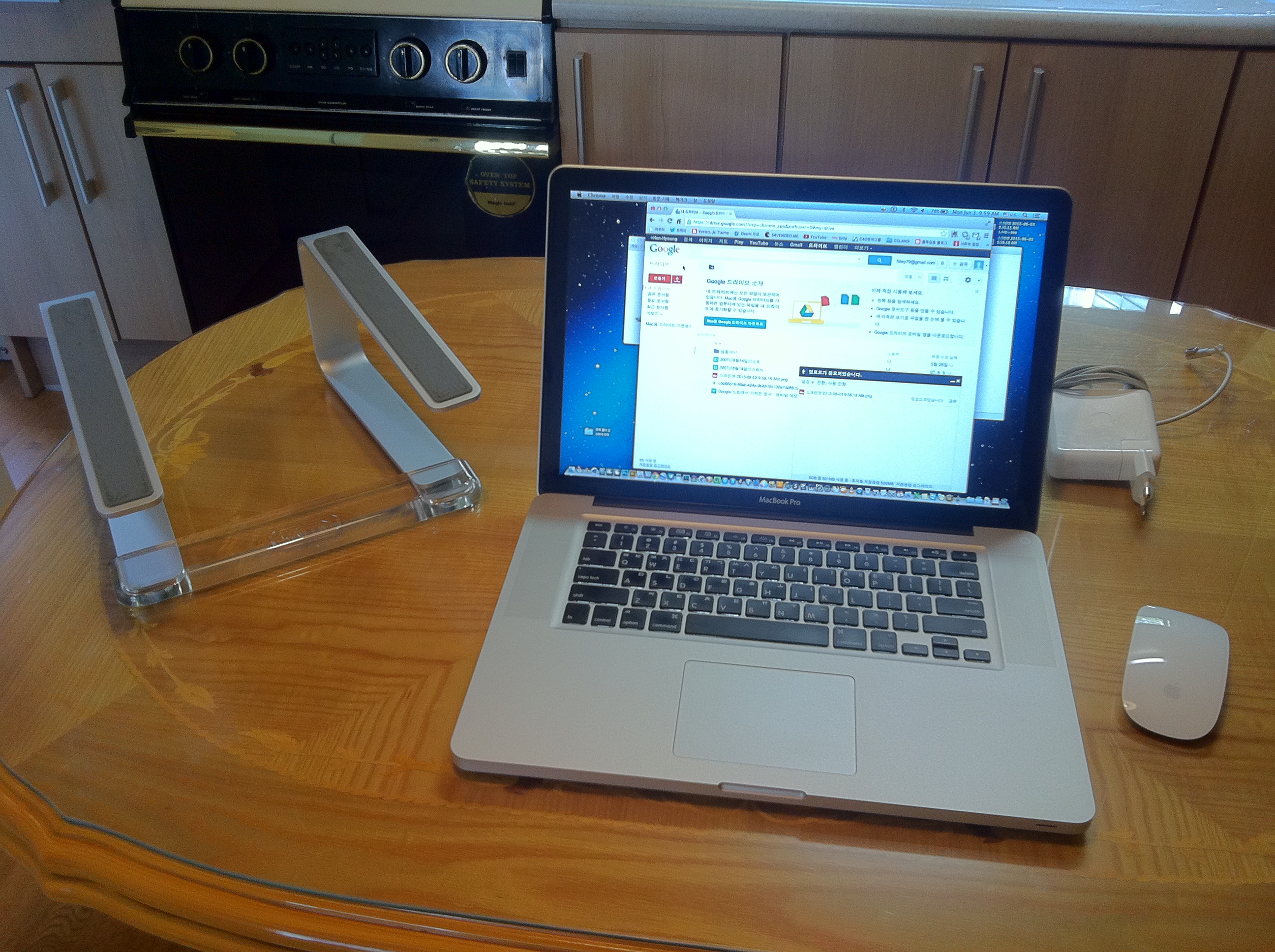 1)이제 랩탑은 사용을 하지 않는 관계로 벌킨 알루미늄 재질과 투명 플라스틱으로 된 노트북 받침대(6만원대)
