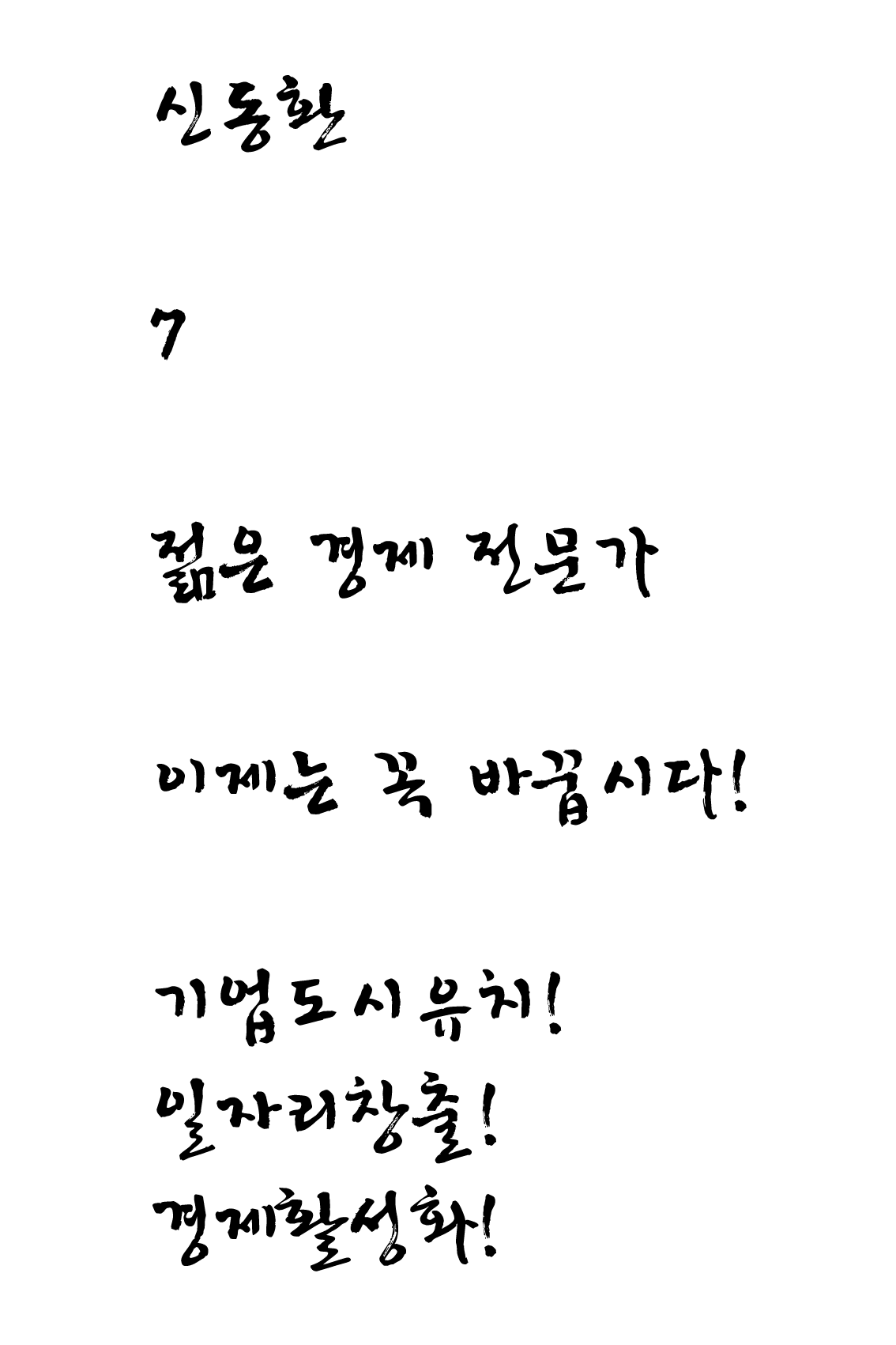 [급]아웃라인 부탁드립니다(_ _) kidcudi 일반 0 4272 2010.05.18 01:24 -0001.11.30 00:00 20100518-.ai (0byte) + 22 > > 신동환 > > 7 > > 젊은 경제 전문가 > > 이제는 꼭 바꿉시다! > > 기업도시유치! > 일자리창출! > 경제활성화! > > 너무많죠? > 위에 문구들을 유려체랑 쿨째즈체 두개로 아웃라인좀 부탁드립니당 > 조금 급해서요 ㅠ.ㅠ > 유려체밖에 없어서 유려체만 했어용